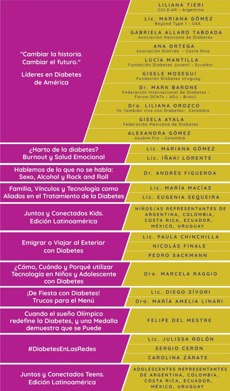 La CUMBRE INTERNACIONAL We.CONNECT DIABETES 2021 reúne, en un encuentro virtual, a algunas de las voces más fuertes en diabetes a nivel global, investigadores de renombre mundial, pacientes expertos, influencers y profesionales de la salud de 15 países, representantes de 10 Organizaciones de Diabetes de América y 1 Alianza Global, Jóvenes Líderes de 9 países de América, miembros del Gobierno.